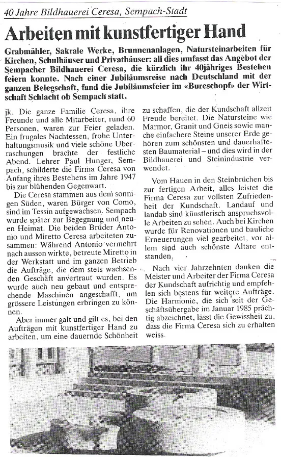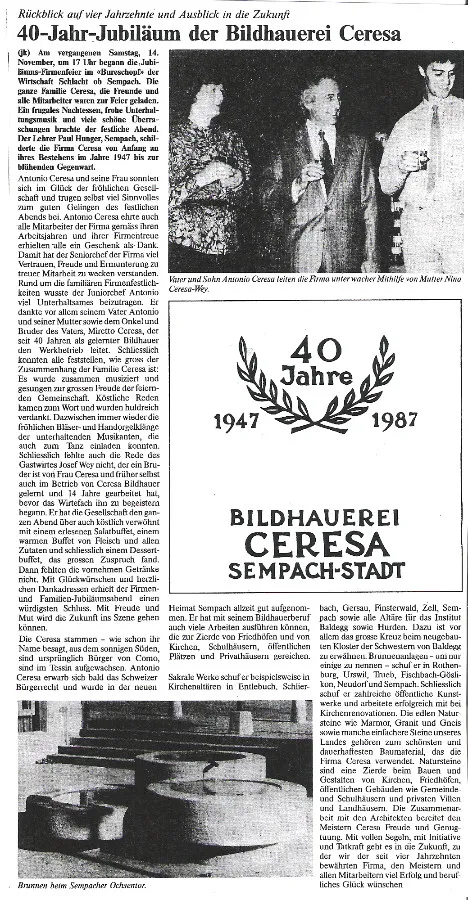 Presseberichte über unsere Firma im laufe der Zeit zum nachlesen